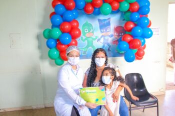 Na oportunidade, as crianças que foram vacinadas receberam um “Certificado de Coragem” atestando o superpoder dos pequenos e a ajuda essencial no enfrentamento à pandemia. O incentivo, segundo a Coordenadora de Gestão em Saúde, Fabiana Marques Machado Lima, é essencial para que mais crianças possam receber o imunizante.