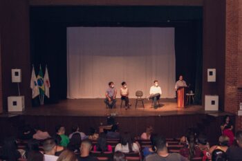 2 – Mateus Guerra, Matheus Faria e Jaider Lage durante palestra aos estagiários