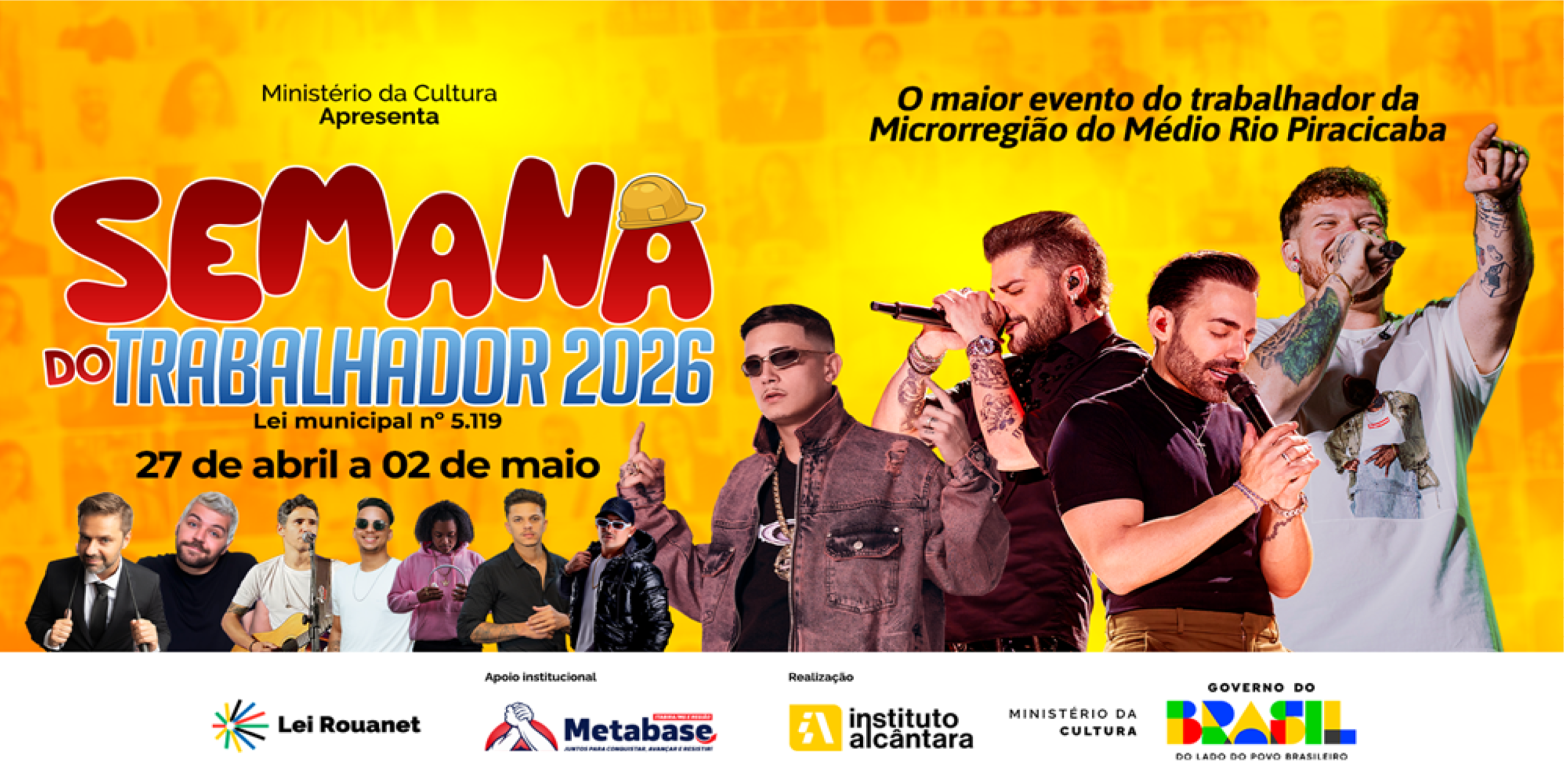 Vem aí um dos eventos mais esperados de Itabira e região! Do dia 27 de abril a 02 de maio, uma programação completa com shows, esporte, cultura e muita emoção para celebrar o trabalhador, personagem que move a nossa cidade!