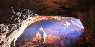 Caverna utilizada como abrigo por preguiças gigantes pré-históricas, há cerca de 10 mil anos, está...